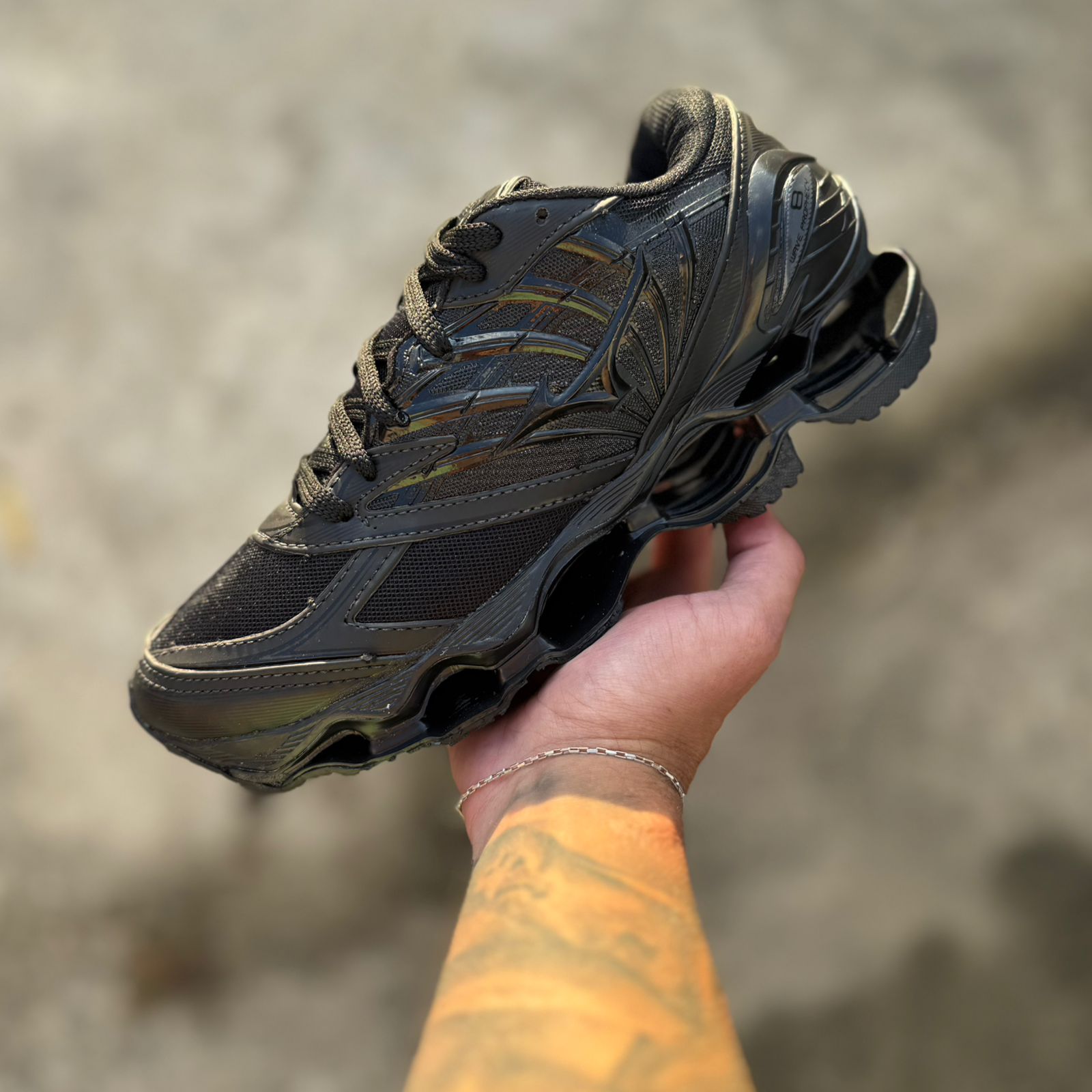 O cabedal é construído com material sintético e malha respirável, proporcionando ventilação adequada e permitindo que os pés permaneçam secos durante o uso prolongado. A estrutura do cabedal oferece suporte e estabilidade, reduzindo o risco de torções e lesões.
